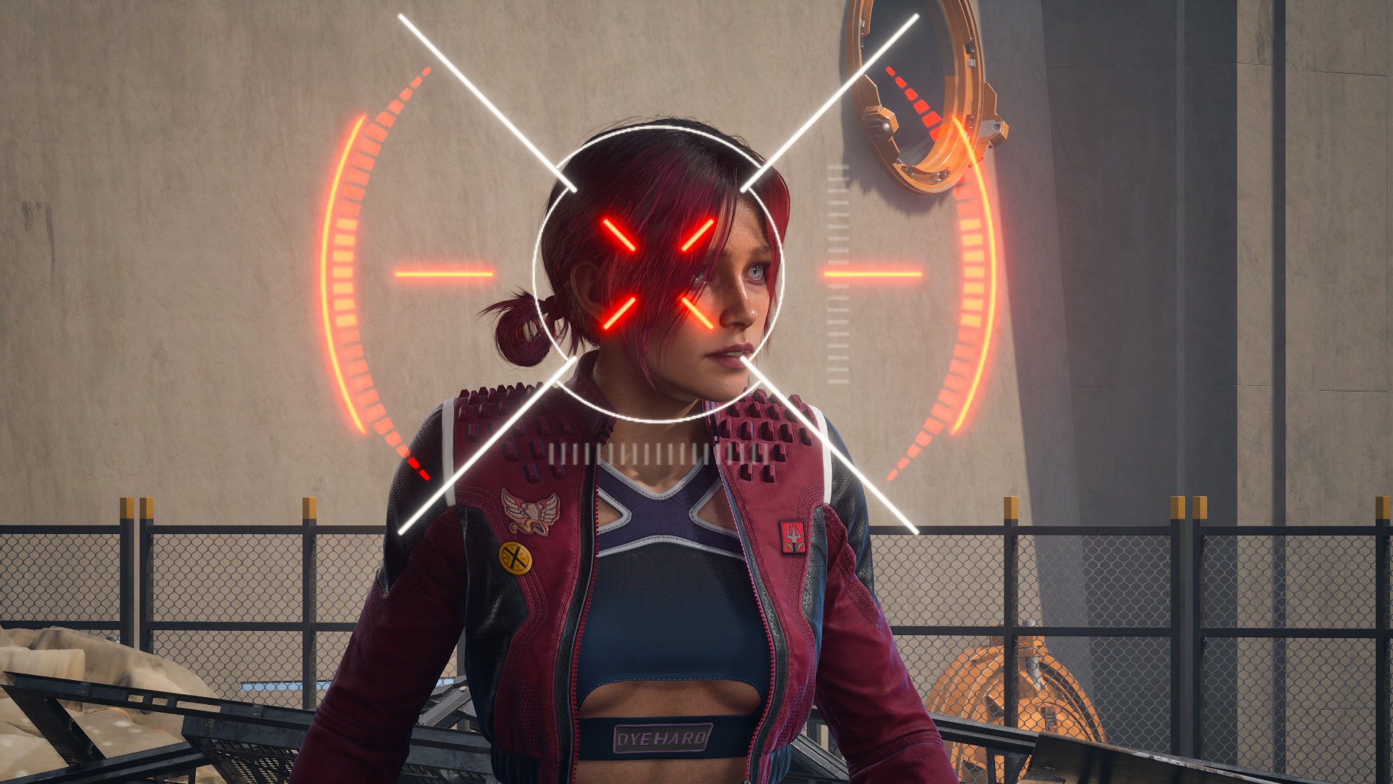 Everything Redline sees is projected by the implant itself – diegetic by design, but built for clarity under pressure. The Spine starts cold and military. As it adapts to its wearer, it becomes something more personal. Think of it as the system learning who it belongs to.
